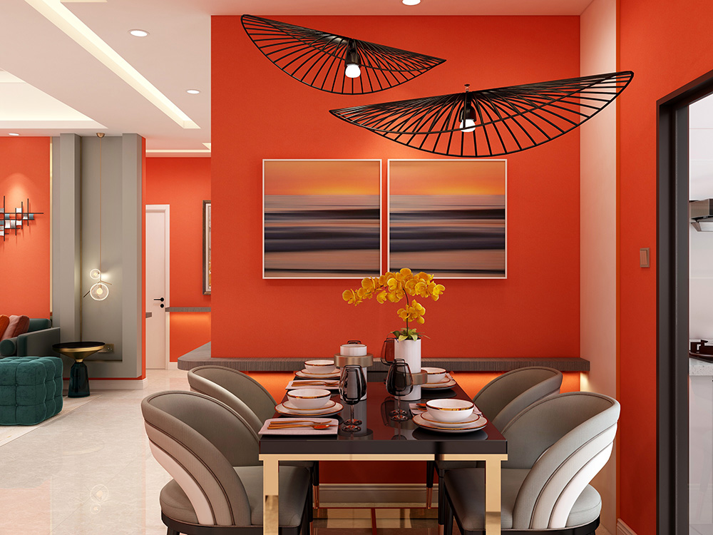SLT4B-桔黄T竹炭纤维无缝墙布装修案例效果图